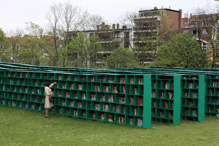Bookyard by Massimo Bartolini . An outdoor public library for the city of Ghent